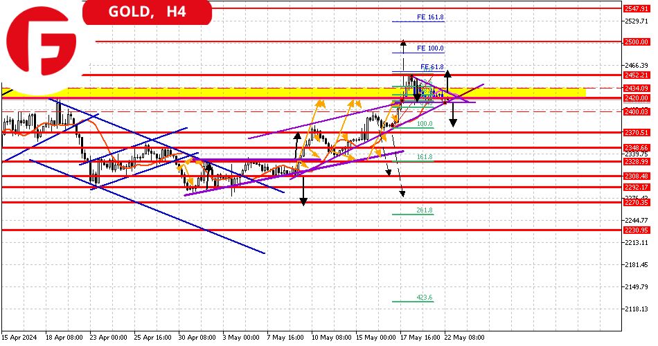 إذا تعزز الدولار الأمريكي، فمن المرجح أن يتحرك أصل الذهب/الدولار الأمريكي للأسفل. وبالتالي، اختراق مستوى دعم المثلث وخط الاتجاه الصاعد والمستوى النفسي القوي 2400.00. والذي بدوره يفتح أهدافاً هابطة عند 2370.00؛ 2350.00 وحتى المستوى الرئيسي 2330.00.