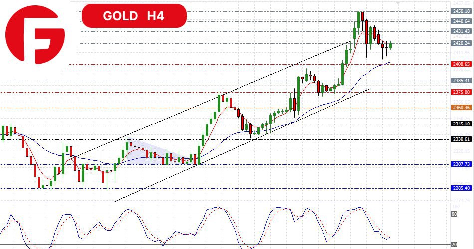 ولكن كسر مستوى الدعم 2400 دولار يمكن أن يغير الاتجاه من الصعود إلى الهبوط.
