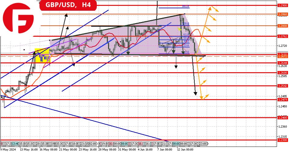وعليه، فإننا نتوقع اختراق قاع الشكل، المستوى 1.2680، يليه الثبات أدناه. وفي هذه الحالة يتم فتح الأهداف 1.2645. 1.2600; 1.2540 1.2480.