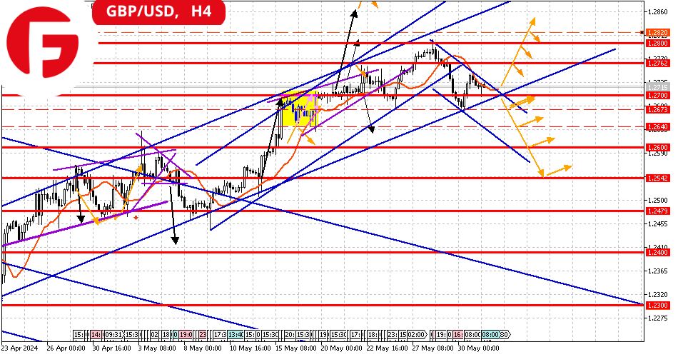 بعد أن وصل إلى الحد الأقصى عند 1.2800، بدأ الجنيه في حركة تصحيحية إلى مستوى 1.2670. وفي الوقت الحالي يقع السعر في نطاق ضيق، بين خط التصحيح الهابط وخط الاتجاه الصاعد. مثلث التشعب.