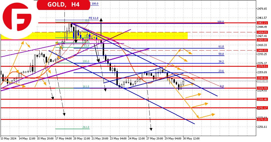 في هذه الحالة، يمكننا أن نتوقع المزيد من حركة السعر على طول الاتجاه، مع التثبيت عند مستويات 2310.00 و2290.00 مع احتمال الانخفاض إلى 2270.00.